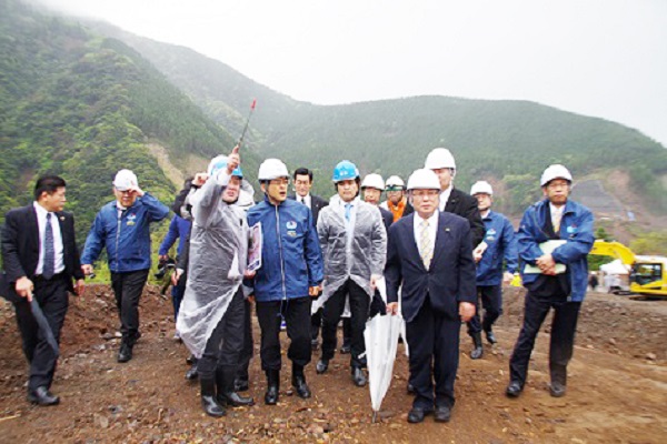 熊本県では、南阿蘇鉄道の災害復旧の進捗状況、平成30年度に開通予定の九州横断自動車道延岡線(嘉島JCT~矢部)の整備状況を視察しました。