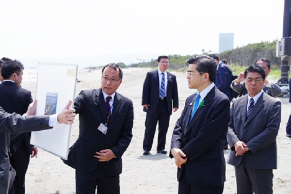 宮崎海岸の侵食対策を視察する石井大臣