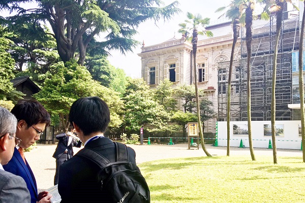 秋本政務官は、5月1 日、東京都台東区の歴史的建築物である旧岩崎邸庭園、国立西洋美術館、国立国会図書館国際子ども図書館の保存・活用の取組を視察しました。