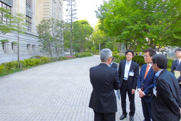 国際子ども図書館の外観の説明を受ける秋本政務官