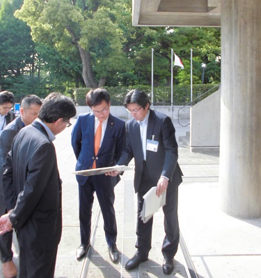 国立西洋美術館の免震レトロフィット工事※1の説明を受ける秋本政務官