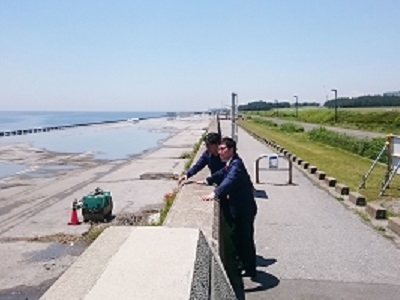 秋本政務官は、5月14日、レッドブル・エアレース2018の場外離着陸場予定地である浦安総合公園護岸部を視察しました。 場外離着陸場の現地を実際に見ながら、今後行われる安全対策について説明を受け、安全性の確認を行いました。