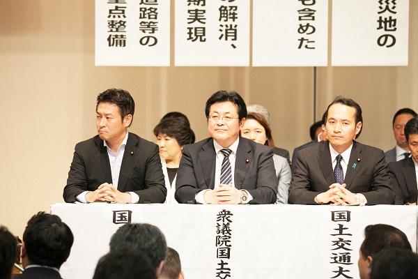 5月17日、都内において、「命と暮らしを守る道づくり全国大会」(道路整備促進期成同盟会全国協議会主催)が開催され、国土交通省から、あきもと副大臣、簗政務官が出席しました。