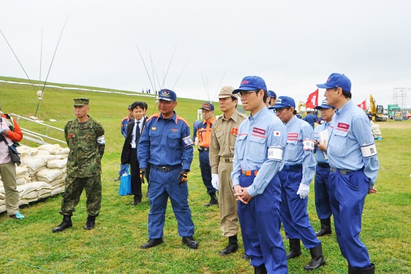 演習には国土交通省のほか、千葉県、栄町、水防団、警察、自衛隊などに加え、地元企業、学校など44機関から約1,000人が参加し、一般からも約11,000人が参加しました。