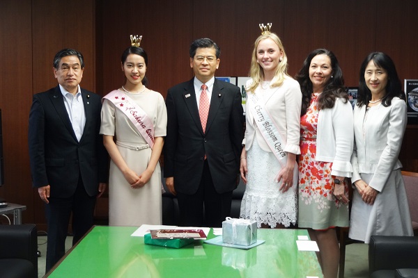 平成30年5月31日、石井大臣は、「2018全米さくらの女王」マーガレット オメーラさんと、「第27代日本さくらの女王」竹中 理沙子さんの表敬訪問を受けました。