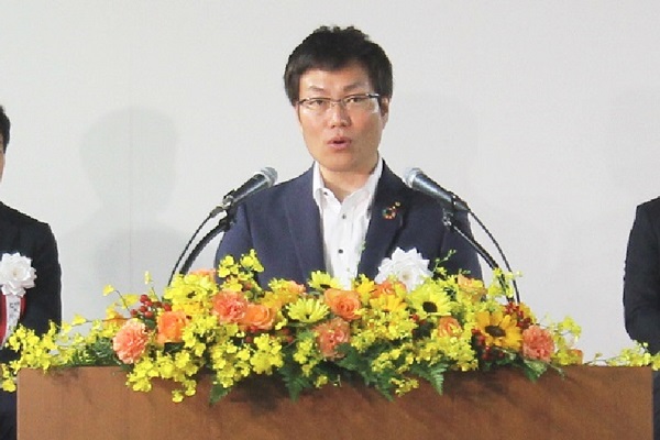 挨拶する秋本政務官