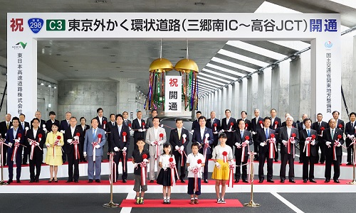 石井大臣は、挨拶のなかで「外環の開通により、千葉の湾岸エリアと関東各地が東京都心を通ることなくアクセス可能となり、利便性・生産性の向上等、その効果は、首都圏に広く及ぶことが期待される。」旨、述べました。