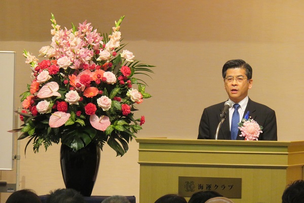 石井大臣は、祝辞の中で、名誉総裁表彰を受賞した方々を始め、海上の安全確保に貢献した方々の功績をたたえるとともに、「広大な海において、国民の皆様の安全・安心を確保するためには、官民が一体となった取組みが重要となる。今後とも、日本水難救済会の活動にできる限りの支援や協力を行う」と述べました。