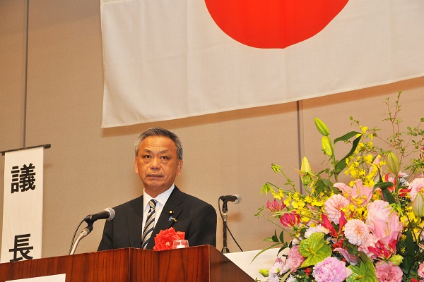 総会にて挨拶する高橋政務官