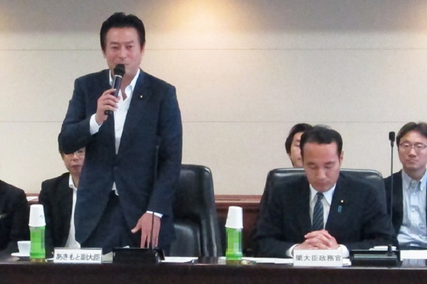 主催者として挨拶したあきもと副大臣は、「国土交通省として、離島をとりまく厳しい状況を踏まえ、離島活性化交付金などを活用した離島振興のための施策を積極的に推進している」旨、述べました。