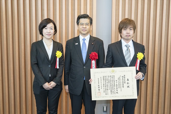 式典では、石井大臣は国土交通大臣賞を受賞した「ヤフー株式会社(東京都)」に表彰状を授与しました。