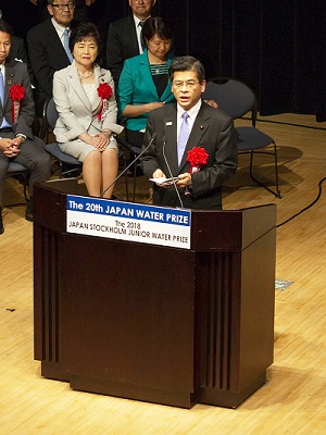 石井大臣は主催者挨拶の中で「今回受賞される皆様に対し、これからも日本のみならず、世界の水問題を解決する先駆的な役割を果たしていただくことをお願いする」旨、述べました。