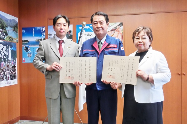 平成30年7月11日、牧野副大臣が主務大臣連名の認定証を伊豆の国市長及び横手市長に交付しました。