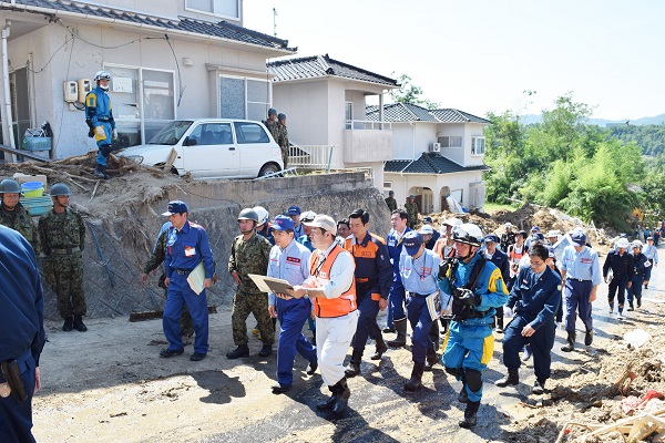 平成30年7月14日、石井大臣は、広島県を訪れ、平成30年7月豪雨の被災地を視察しました。