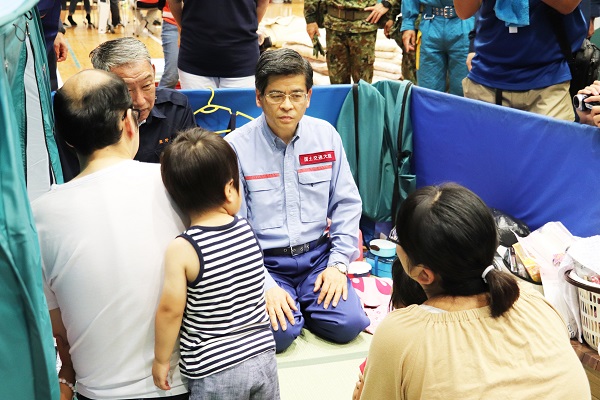 避難所となっている熊野町民体育館を訪問する石井大臣