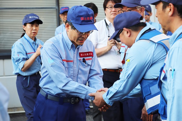 TEC-FORCEを激励する石井大臣