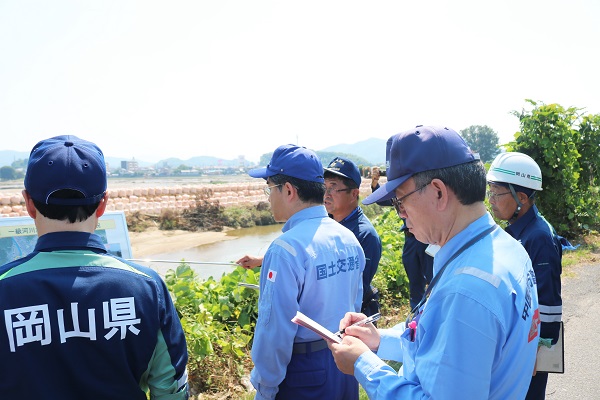 岡山市東区の砂川被災箇所を視察する石井大臣