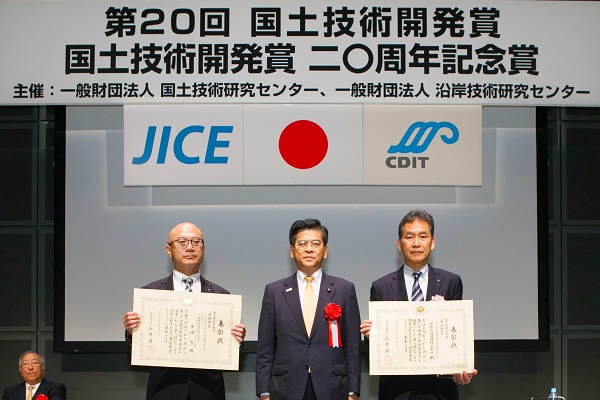 国土技術開発賞は、建設分野における技術開発者に対する研究開発意欲の高揚と建設技術水準の向上を図ることを目的として、建設分野における優れた新技術及びその開発に貢献した技術開発者を対象に、国土交通大臣が表彰するものです。