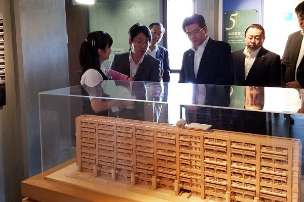 昭和30年代の高層集合住宅の構造について説明を受ける石井大臣