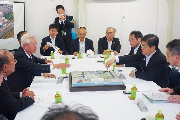 大阪湾岸道路西伸部についての説明を受ける石井大臣