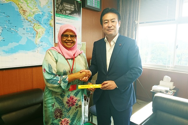 あきもと副大臣とシャリフ事務局長は、持続可能なまちづくりにおける国土計画の重要性等について意見交換を行うとともに、国連ハビタット福岡本部へのサポートを通じた世界の都市問題の解決への貢献など、国連ハビタットとの協力関係を深めて行くことを確認しました。