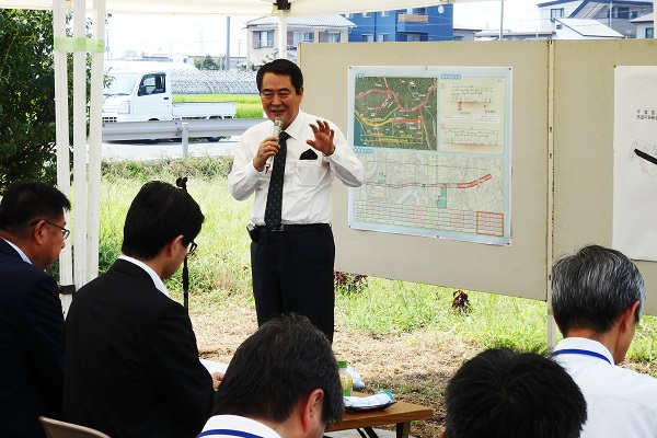 牧野副大臣は、静岡県三島市を訪れ、市道平田新谷線の工事状況を視察しました。