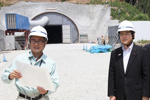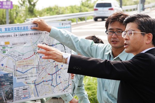東駿河湾自動車道(沼津岡宮~愛鷹)の進捗状況について説明を受ける石井大臣