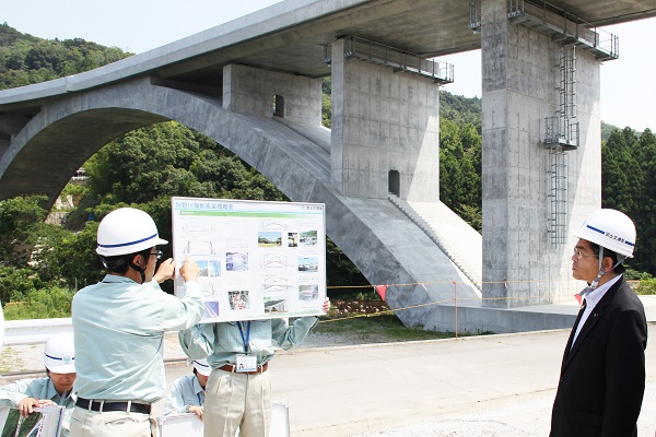 狩野川横断高架橋の整備状況について説明を受ける石井大臣
