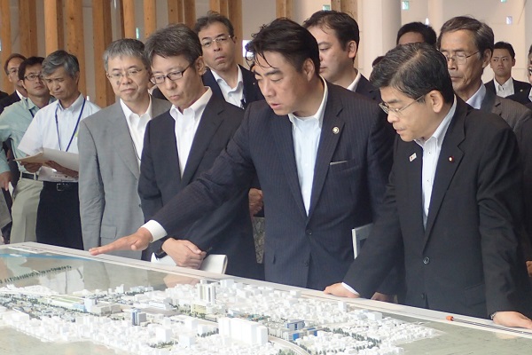 沼津駅周辺の連続立体交差事業について説明を受ける石井大臣