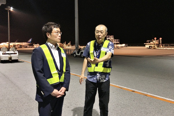 平成30年8月8日(水)、秋本政務官は那覇空港を訪れ、株式会社ANA Cargoによる沖縄貨物ハブの取組みについて説明を受けるとともに、貨物地区の利用状況や滑走路増設事業の現況を視察しました。