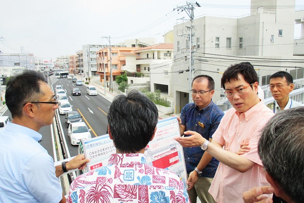 沖縄県では、沖縄西海岸道路・浦添北道路及び臨港道路浦添線、土地区画整理事業(沖縄都市モノレール浦添前田駅周辺及びてだこ浦西駅周辺)、国道330号交差点(我如古~長田)を視察しました。