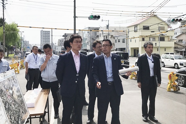 国道330号交差点の整備状況について説明を受ける秋本政務官