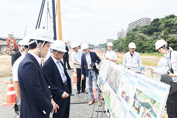 土地区画整理事業の進捗状況について説明を受ける秋本政務官