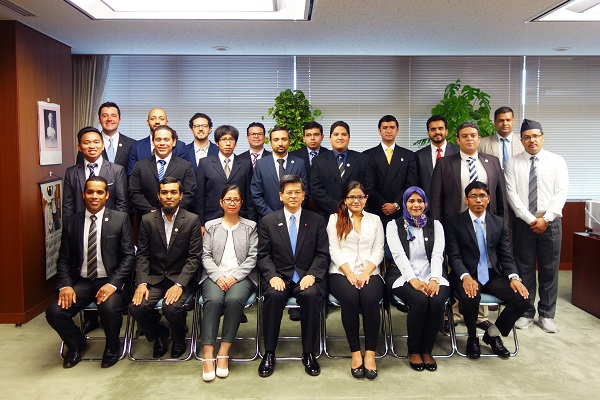 石井大臣は、国際地震工学研修(通年研修)の修了にあたり、10か国 21名の研修生による表敬訪問を受けました。
