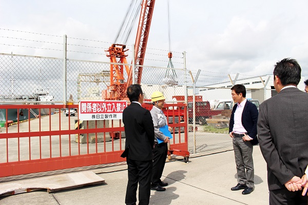 茨城港で「ナセル」積み出し岸壁を視察する秋本政務官