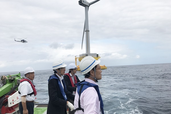 福島県沖の洋上風力発電設備を視察する秋本政務官