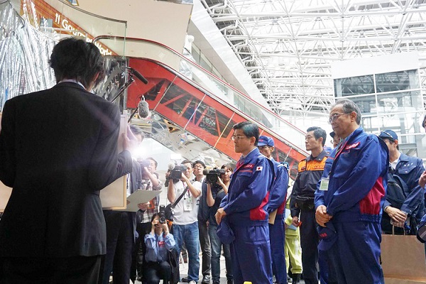 新千歳空港ターミナル被災現場の説明を受ける石井大臣