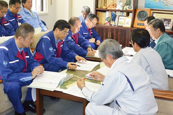 また、厚真町役場にて北海道副知事、厚真町長、安平町長、むかわ副町長と意見交換を行いました。