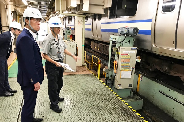 JR東日本東京総合車両センターにて検査工程を視察する秋本政務官