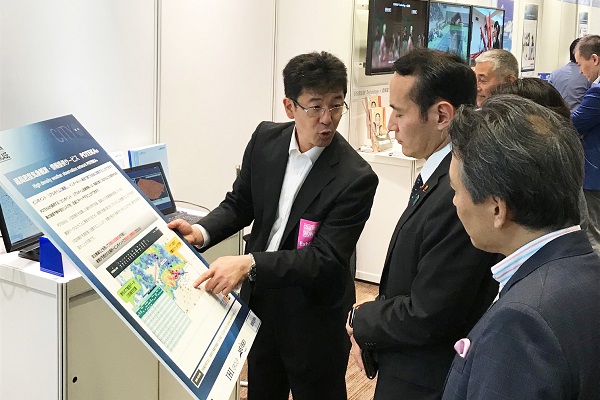 出展企業のブースにて、空港における情報のユニバーサル化、第5世代移動通信システムを利用した遠隔診療、顔認証システム等を視察しました。