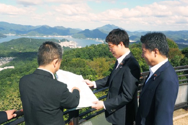 五老スカイタワーで舞鶴港について説明を受ける秋本政務官