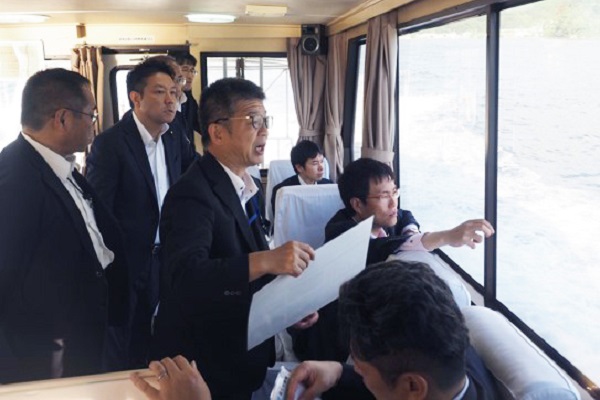 港湾業務艇「きのかぜ」から舞鶴港を海上視察する秋本政務官