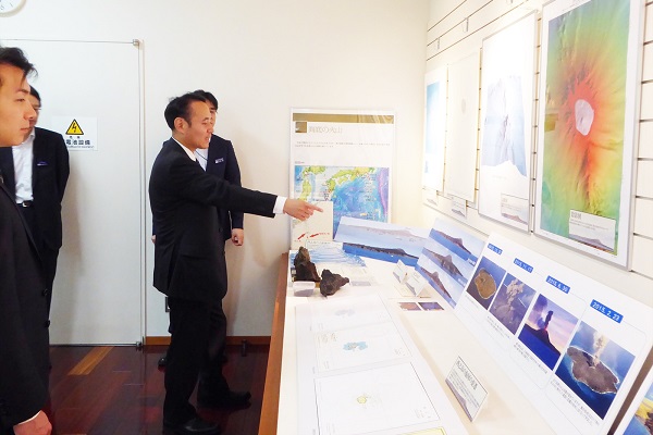 海洋情報資料館を視察する簗政務官