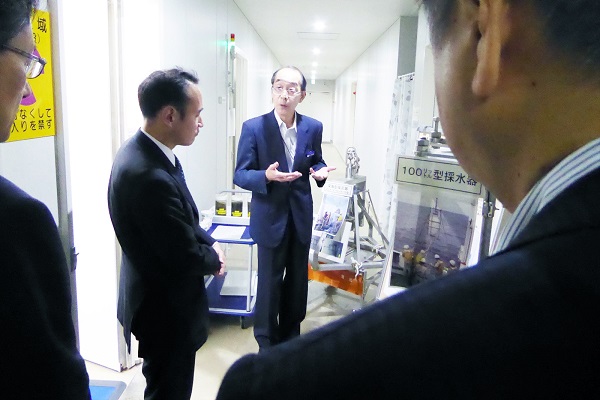 測量船拓洋にて海洋情報業務等の説明を受ける簗政務官