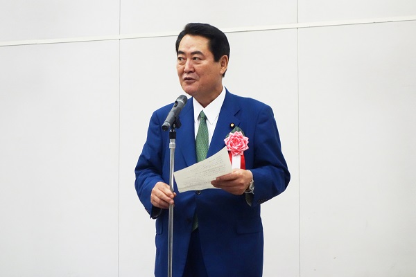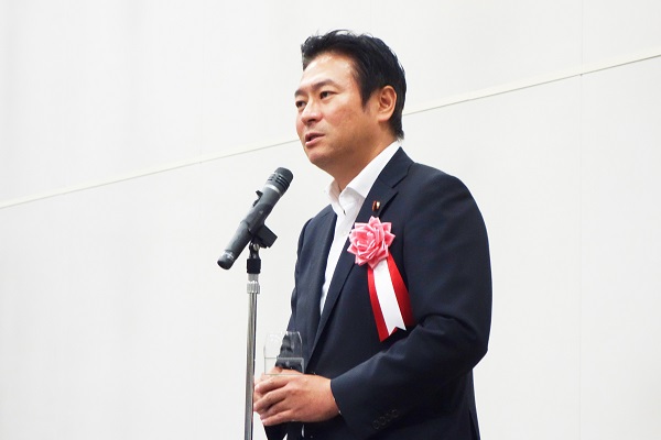 挨拶するあきもと副大臣