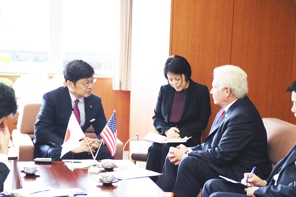 10月15日(月)、阿達政務官は、 アメリカ合衆国インディアナ州ジム・シェリンガー商務長官の表敬訪問を受けました。