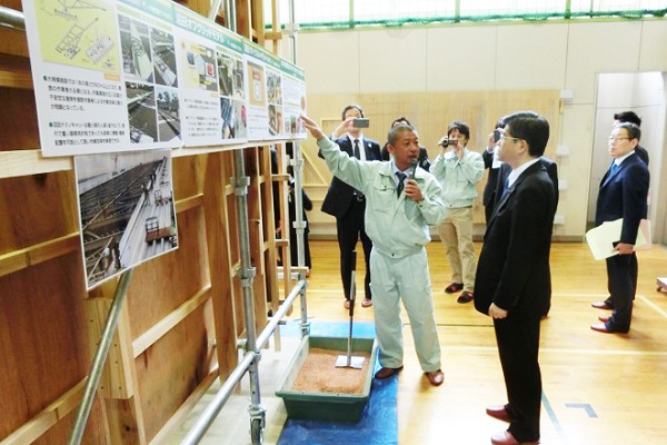 利根沼田テクノアカデミーの施設概要について説明を受ける石井大臣