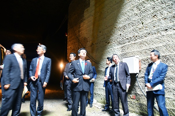 大谷地域振興事業(戸室山下採石場)を視察する石井大臣