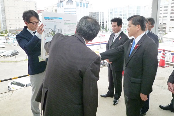 宇都宮駅周辺における東口地区整備計画について説明を受ける石井大臣