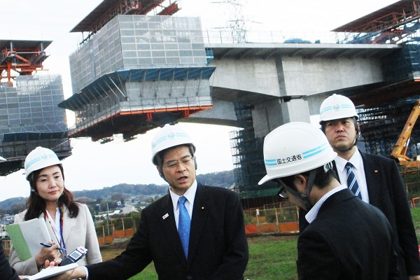 厚木秦野道路及び新東名高速道路の整備状況を視察する石井大臣
